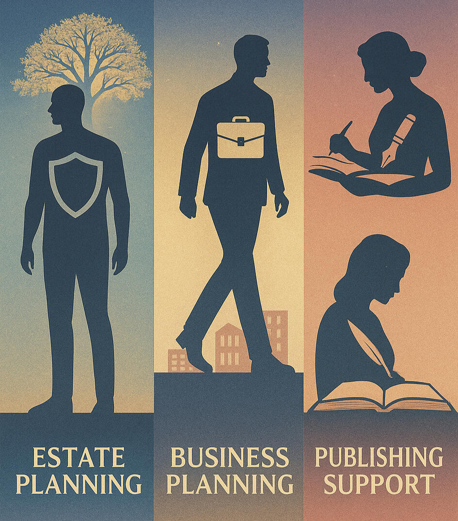 Affordable estate planning, business guidance, and publishing support — all in one place.